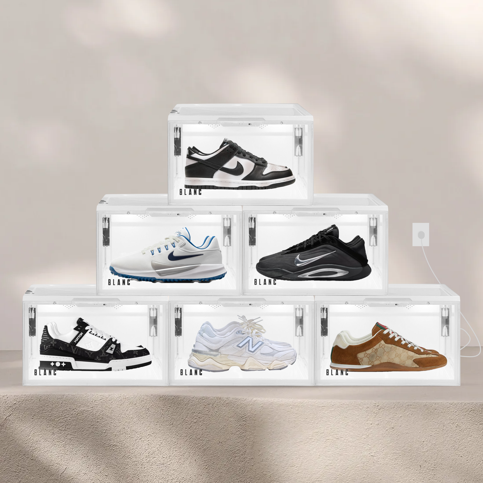 Upgrade your sneaker display with a storage solution designed for collectors who take their kicks seriously. This smart sneaker case combines modern technology with sleek design to showcase, protect, and illuminate your favorite pairs—all at the sound of your voice.